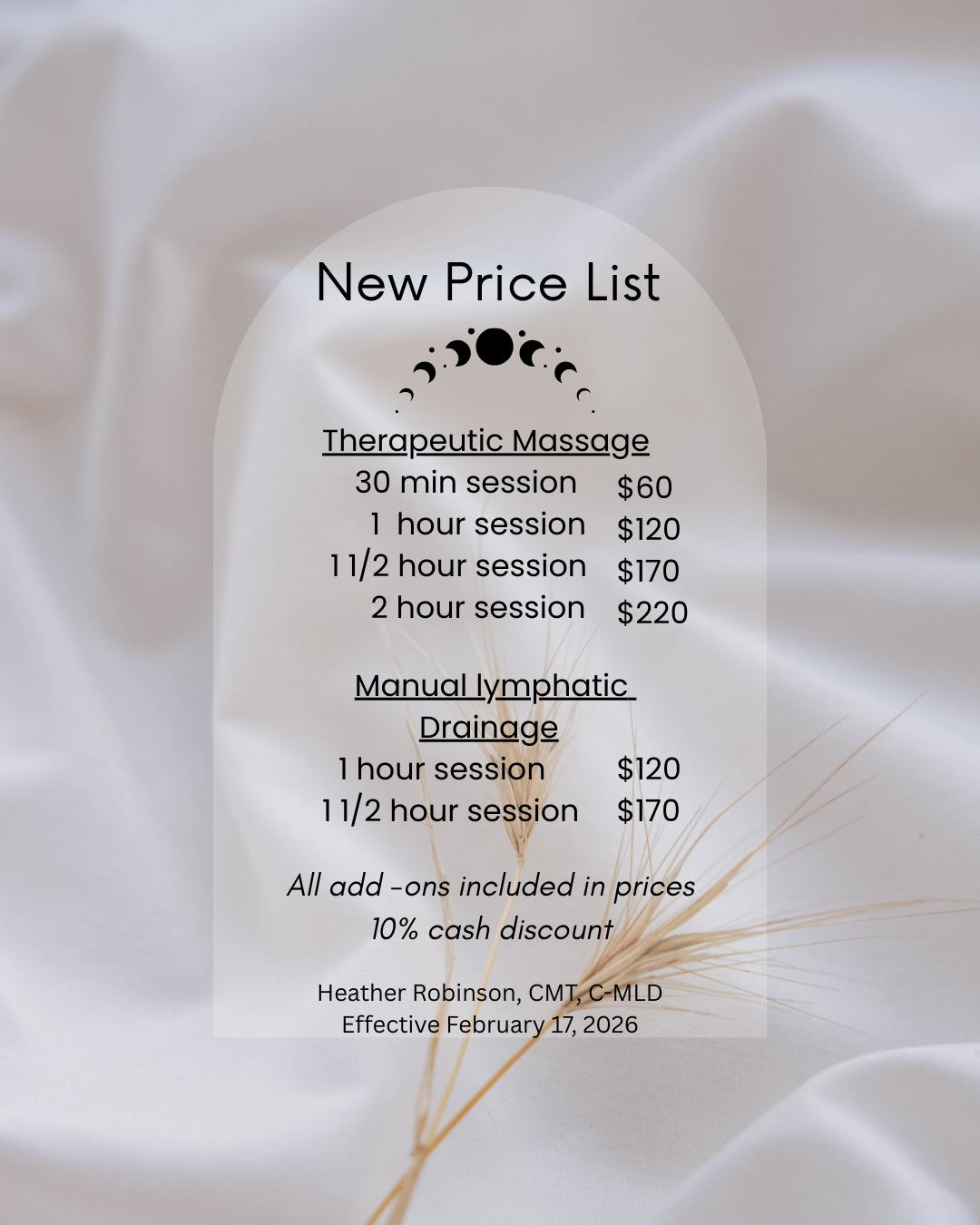 Recently, Heather has taken a dive into the watersheds of the Lymphatic system! Her training has been in the Vodder style of Manual Lymphatic Drainage (MLD) which is beneficial on many levels, including detoxification, preparing for surgical procedures and healing from surgery, traumas and injuries. The touch for MLD is a gentle, light stretching/pumping of the skin in a rhythmical series of protocols. This treatment is very relaxing and beneficial for the nervous system, immune response and in pain management.